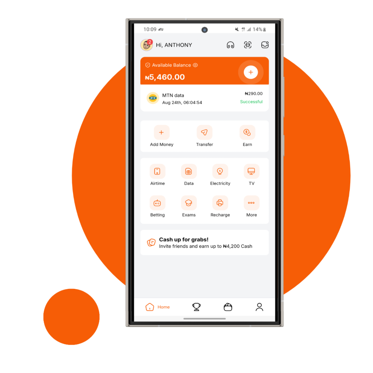 You can pay bills such as Data, Airtime, Cable TV, Electricity & more.